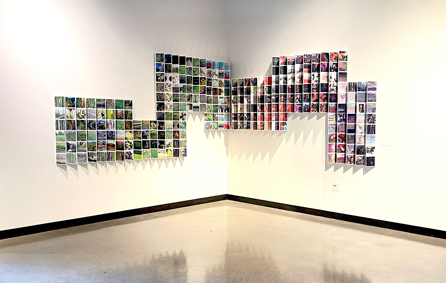 In Sense of Place, I explore physical places and landscapes through lenses of emotion and collective experiences. The results are abstracted “place-portraits.” The exhibit includes selected individual works from my Daily Art Habit series that act as personal time capsules, capturing moments in place and time by combining mark-making, writing and photography in an intuitive digital painting process. Also featured is the collaborative work “Sammamish River,” a 564-piece collaborative work, including 104 pieces contributed by community members that were inspired by the river in some way. Created with support from the City of Bothell Arts Commission, the shape of this work reflects the course of the river as it passes through the city of Bothell, a portrait of place shaped by our collective experiences. More about Sammamish River.